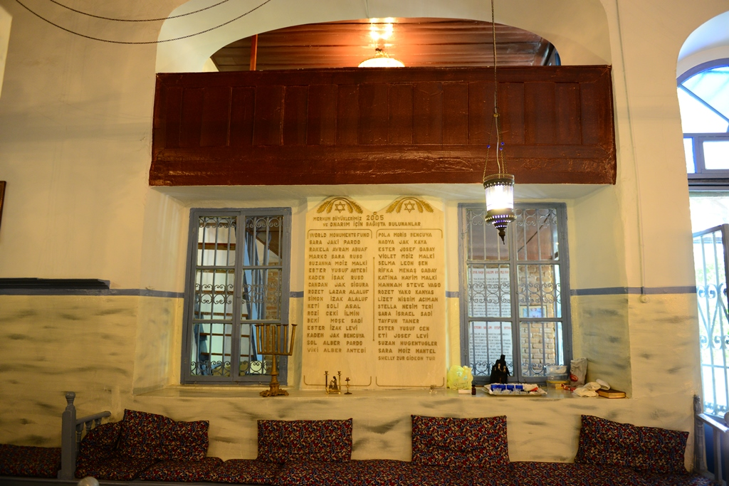 Shalom Synagogue is the only synagogue that was not damaged in the fire of 1841. It can be said to be the most authentic synagogue of Izmir, through its ceiling decorated with engravings, and floral cushioned sofas stretching along the walls, and its interior reminiscent of a typical Anatolian house. Although it was built on a central plan, in 1939, the Tevah (prayer reading platform) was moved in front of the wall opposite the Ehal (cabinet where the Torah scrolls are stored).