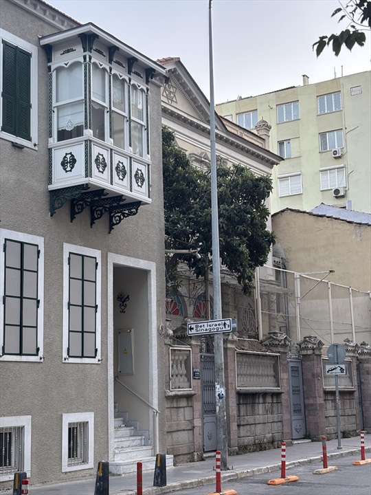 1907 yılında ibadete açılan Bet İsrail Sinagogu'nun yapı üslubu ve oturma düzeni geleneksel İzmir üslubundan farklı. Sinagog merkezi planla oluşturulmayarak baştan çift Teva uygulaması yer almış. Arsanın konumu yüzünden, Ehal doğu yerine güney duvarına yerleştirilmiş.